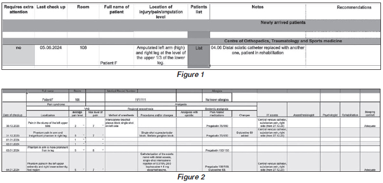 Handling acute pain in the middle of a war is extremely challenging, especially when you don’t have enough resources. This article describes the use of Google Sheets as a simple, accessible system for recording and managing pain at a Ukrainian hospital during wartime. The approach offers a low-cost and flexible tool to help healthcare providers monitor pain scores, pain relief interventions and patient progress in medical care. This method isn’t restricted to war zones or particular healthcare systems.